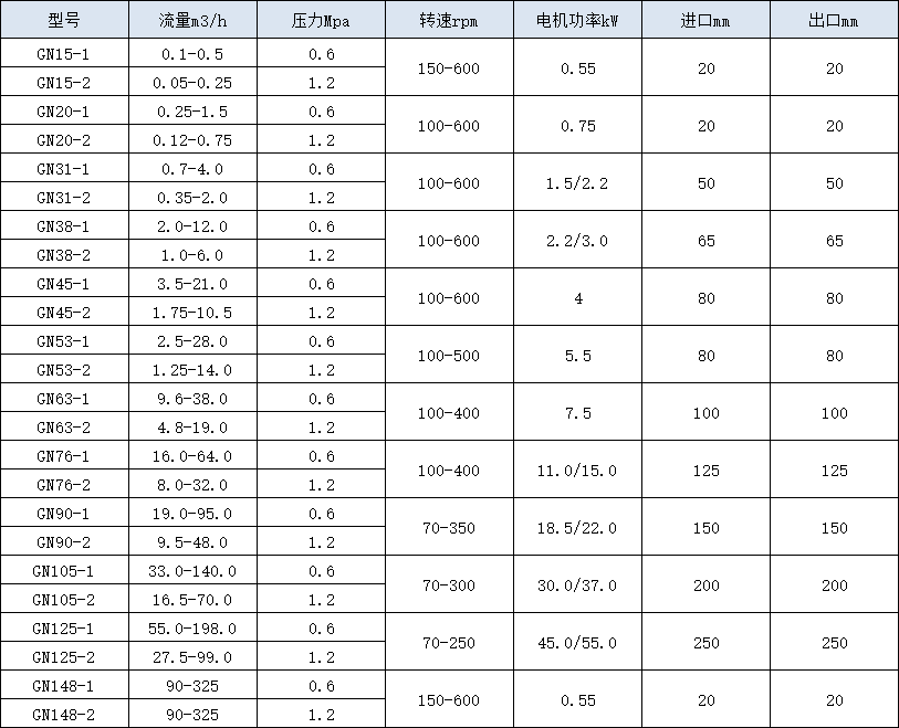 中成款GN系列对标进口螺杆泵, 可以提供各种单螺杆泵制造商的通用零部件。