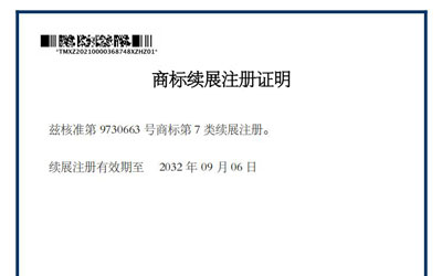 中成泵业cnsp商标续展注册证明