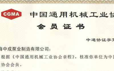 中国通用机械工业协会会员证书